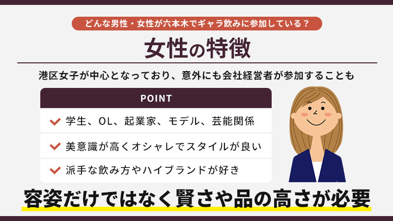 六本木でギャラ飲みをする女性についてまとめると、次の通りです。