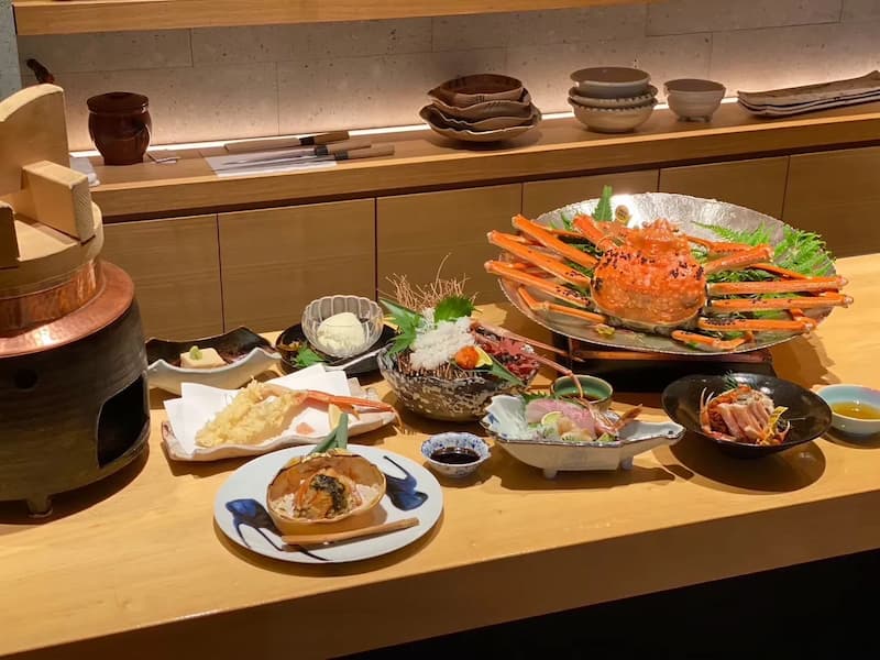 冬には日本海を代表する「越前がに」が提供され、茹で蟹や刺身、焼き蟹を楽しめます。